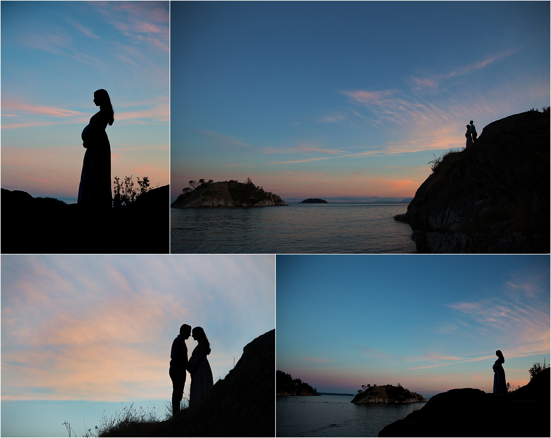 This gorgeous mama and I had so many wonderful ideas and we were able to capture the most beautiful summer maternity images. There was a strong sense of adventure as we started off in sunny Tsawwassen and ended up all the way over near Horseshoe bay, at Whytecliffe park. The sunset was coming fast but we still managed to capture the essence of a west coast pregnancy with the ocean at our feet and the mountains at our back. If I was closer to this end of Vancouver, you’d have to tear me away. There is nothing better for me, that makes a session extra inspiring, than the smell of the ocean and the sunsets that accompany it. So much love between the two and coupled with the scenery I knew this mama would have a hard time choosing what to adorn her walls with!